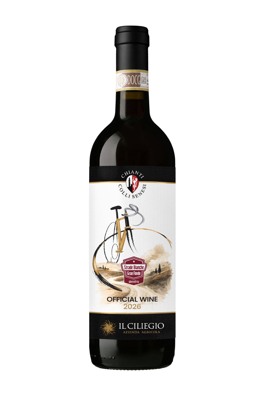 This Limited Edition is labelled GRAN FONDO STRADE BIANCHE, of which our company is the Official Wine Sponsor together with the Consorzio Chianti Colli Senesi.
